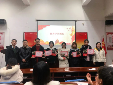 结业仪式上,表彰了本次党训班优秀学员:周逸颖、王燊、吴明烨、朱婷婷、郑佳雯。