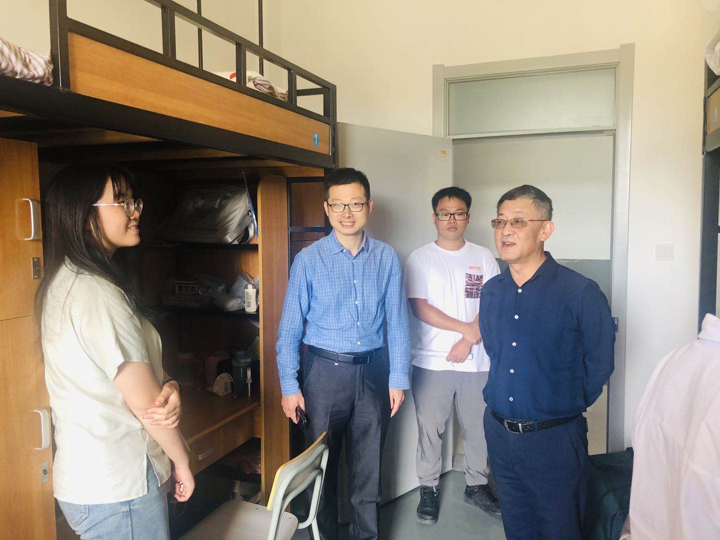 学院领导和老师们查看了新同学们的寝室,细心的询问了他们的来校感受、未来规划等,并了解了寝室的相关情况。在走访过程中,邓院长亲切地与新生们拉起了家常,并了解了新同学们的家乡及基本情况,与他们一起回忆了自己的大学岁月。叮嘱新同学们要在团结寝室的基础上,尽快适应新环境,与寝室同学和睦相处,一起努力,互帮互助,共同进步。