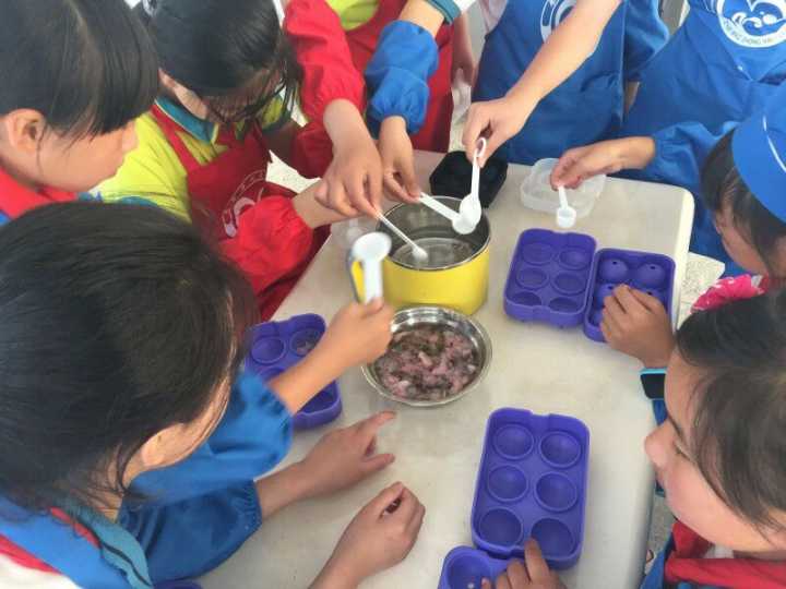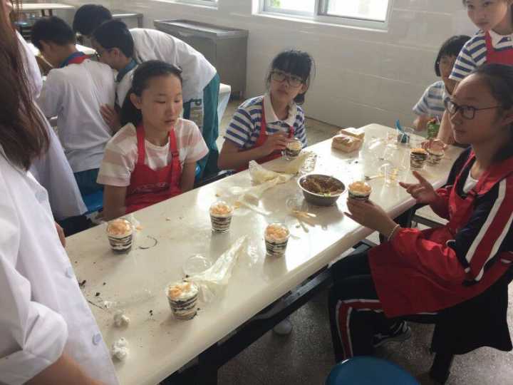 经过前期的交流和沟通,浙江海洋大学食品与医药学院社团部及食品安全与营养协会一行人于5月31日下午到达展茅中心学校。在整理好工具和摆放完材料等准备活动后,展茅中心学校烘培社学生进入食堂二楼,活动正式开始。活动伊始,先将参与学生分成3组,每一组分别制作一种美食——木糠杯,樱花曲奇饼干和樱花水信玄饼。